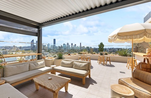 Only 3 kilometres from Brisbane bustling CBD, this chic apartment offers contemporary interiors coupled with breathtaking views of Kangaroo Point's green streets and Brisbane's city skyline. The unit features an open-plan living area that seamlessly extends into a covered balcony with seating and a barbecue. The comfortable bedroom is an en-suite with ducted air conditioning and built-in robes. The kitchen and living area are graced by lots of natural light, and there is a designated study nook overlooking the trees. Guests of this property will enjoy a communal rooftop featuring a pool and recreational area. Close to everything you could need or want, this property is perfect for you on your Brisbane stay. This accommodation exclusively provides self-check-in services.