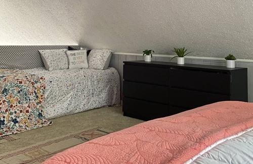 As you step inside, you'll immediately be drawn to the stylish and inviting atmosphere. The property features two bedrooms and a spacious loft, providing ample space for a group of friends or a family looking to unwind and create lasting memories.