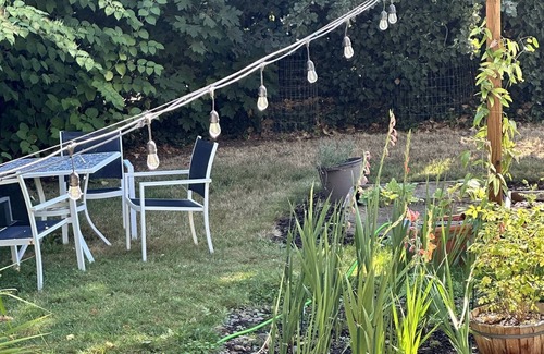 This apartment has gorgeous natural light, or you can lounge at the bistro table on the front porch, or the community garden out back.