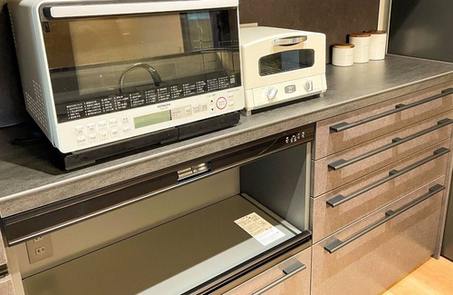 Kitchen facilities IH stove refrigeratorfreezer microwave toaster electric kettle dishwasher cooking utensils tableware