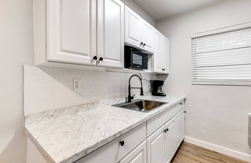 This recently remodeled unit is good for 6 people comfortably. The main bedroom has a queen bed and a smart tv, the second room has a full bed and a single bed with a desk. Guests will be able to enjoy ample space, a living room with a king size sofabed, a smart 55" TV, a beautiful kitchen and convenient location.