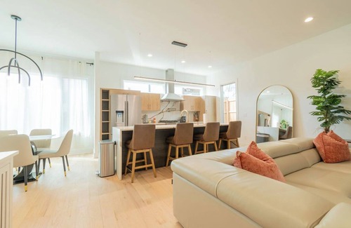 This designer retreat blends luxury and comfort with three private patios, a rooftop fire pit, and a game area. The spa-inspired master bath features a soaking tub & rainfall shower. Just steps from the Beltline, enjoy top dining, breweries & shops. Minutes from Mercedes-Benz Stadium & Ponce City Market. With fast WiFi, smart TVs, and garage parking, it’s perfect for groups. Book now!