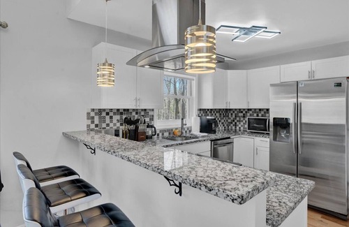 You'll be relaxing in style at our spacious and newly renovated 4 bedroom home in a gold star resort with outdoor pool (open summer), indoor pool (open winter wed/fri eve and datime sat/sun), 2 lakes, beaches, playgrounds, beach volleyball, basketball, tennis and more. It features an open concept design, wood burning fireplace, game room, hot tub, outdoor deck with grill, firepit, and seasonal kayaks. Located in the heart of the Poconos, close to amazing State Park hiking, Ski Resorts, Casinos, Kalahari indoor water park, and more!