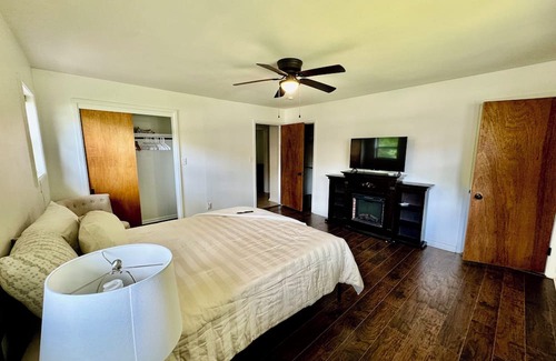 Consider this house your home away from home while you visit one of the bountiful experiences Clarksville has to offer. This charming property boasts 4 bedrooms, including 2 BRAND NEW LUXURY queen beds, Egyptian cotton sheets with spare linens available, 4 twin beds located in bedroom#3, and double stacked queen airbed in room #4 (and plenty of room for more!)and fold flat couch perfect for a comfortable stay for any larger or small group. With amenities like fast and reliable 100mbps WiFi, full-size kitchen furnished with everything including Keurig, Kcup coffee, climate-controlled heating/AC, a washing machine and dryer, an iron, HUGE private backyard with COMFY patio seating, you'll have everything you need at your fingertips. The 2 large bathrooms offer a clean and bright bathtub/shower, double quartz vanities with luxury towels, eco toilets with double or single flushes, and stocked with shampoo, conditioner, and body wash for your convenience. Experience what Clarksville has to offer with a stay at our gorgeous house.