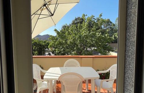 The accommodation is located in a quiet row-house complex on the outskirts of La Caletta, about 900 to 1,000 meters from the beach — ideal for relaxing vacation days near the sea.