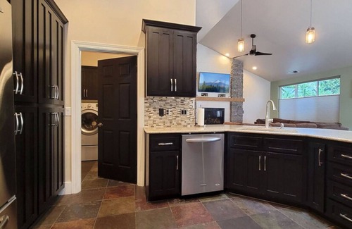 This single-story home nestled in the foohills of RoxyAnn is the perfect hideaway for a weekend of entertainment or extended family stay. A charming and contemporary home offering a spacious interior with modern furnishings, a fully equipped patio and home gym. All within a quick and easy drive to wineries, restaurants, Oregon Shakespeare Festival, Britt Festival, the Rogue River and so much more.