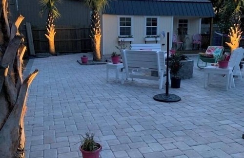 Beautiful outdoor entertaining area with a water feature, BBQ grill, fire pit and lots of seating. Walking distance to restaurants, bars, jet ski rentals, and the Big M Casino boat!