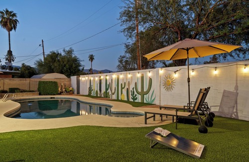 Welcome to your newly upgraded Tucson desert oasis! Our spacious 4BD/2.5BA Eastside home (5 beds + queen sofa bed + a modular sectional) is perfect for families, groups, and remote-work getaways. Enjoy your private pool, brand-new billiards table, ping pong table, vibrant local murals, and stylish new furnishings—all part of our October 2025 refresh designed for your enjoyment.