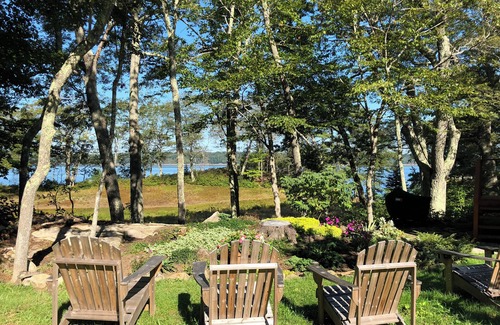 Your cozy “bungalow” is part of an incredible 8-acre private estate with a private beach, walking trails, cliff views, a shared deep water dock, and even a freshwater swimming pond. The Bungalow is an 800 sq ft heated modern post & beam structure providing ample living space with a modern kitchen, two bedrooms (one queen, one full), and a 300 sq ft living/dining room area with an adjoining screen porch. There is also a bathroom with a tub/shower that includes a washer and dryer. Off the porch is a private lawn with four Adirondack chairs, a fire pit, and a BBQ.
