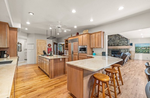Spend the day at the McCall Golf Course, biking through local nature paths, or take the boat for a spin on Payette Lake for fishing, jet skiing, and tubing. The spacious 7-bedroom, 6.5-bath vacation rental has private bedrooms and plenty of amenities, including rustic fireplaces, a wraparound deck, game table, pool table, ping pong table, air hockey table, pop-a-shot basketball game, and 2 laundry areas!
