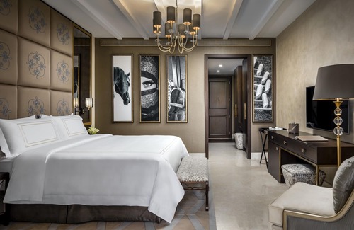 Luxuriously appointed rooms and suites with views of manicured emerald lawns await you in this Andalusian infused paradise. Egyptian cotton sheets, crafted signature pillows, and rainfall showers inspire serenity in the heart of Arabia.