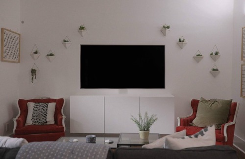 Discover a stylish retreat at our Clinton St Guest Suite. Access your exclusive suite with a Smart Lock, revealing a Queen bed, a dedicated workspace with property-wide Wi-Fi, a Smart TV, and an ensuite bathroom with a shower and a charming claw foot tub. Ample closet space is also at your disposal. Upon entering the private bedroom, a designated sitting area beckons, offering a serene and inviting space for repose and leisure. Placed near the window, this snug enclave is designed for comfort and relaxation.
