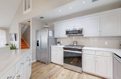 Upon entry, you'll be met with a bright interior and a cozy feeling throughout the well-appointed home. Enjoy the peaceful sea-breeze color of the beachy decor and marvel at the gorgeous finishings throughout the calm atmosphere. Relax and make yourself at home by resting on the plush furniture, watching your favorite movies on the large TV, or sharing a home-cooked meal at the formal dining table. Hobby chefs will love preparing grand meals and beach picnic snacks in the sophisticated galley-style kitchen, equipped with stainless steel appliances and a breakfast bar. Or head out to the deck to dine al fresco. After you've finished your meal, play some of the provided yard games with your loved ones - cornhole, ring toss, badminton, and pickleball are all available!