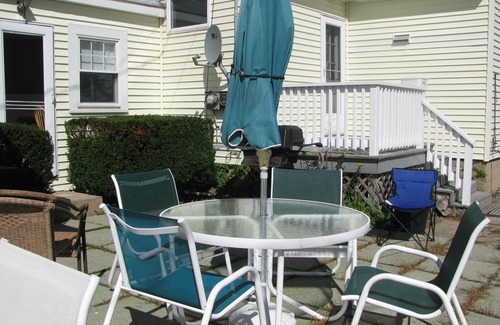 This home was previously owner occupied for generations. It is clean and well cared for. The first floor unit layout is a perfect vacation spot for families that want both togetherness and privacy. The first floor unit in total has 5 bedrooms, 2 living rooms, a modern kitchen, a kitchette and 2 bathrooms. The front section of the first floor unit has a sunny spacious kitchen with brown granite countertops and ocean blue walls. It has stainless steel appliances (including an ice maker), counter seating and a dining table that expands to seat 10. It is adjoined by a sunny and bright living room with a huge picture window. In this section there are 3 spacious bedrooms (two of the 3 have two windows) and a pristine white tiled bathroom with a full tub/shower in this area. One of these bedrooms is off a dedicated hallway which leads to the other section of the first floor unit with a cute kitchenette (everything but an oven and stove), a large informal living room, two additional spacious bedrooms both with two windows, and a bathroom with a shower. There are televisions in each living room and the house is wi-fi equipped. There are ceiling fans in all rooms unit except one bedroom that has a window fan unit.. There is a large back deck/patio with a hard-piped gas grill and plenty of outdoor seating for meals. This rental is only the first floor of the house. The second floor has a small apartment with a separate entrance.