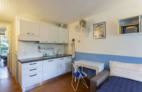The Studio is set in a residential area consisting of a beautiful flowered park where several residential units are located. In season a beautiful outdoor swimming pool is available to guests. The studio has 3 beds (a sofa bed and a foldaway double bed). It is equipped with everything, bed linen, towels and kitchen linen. It has a washing machine and central heating. In front of the entrance door-window there is a patio where you can eat or sunbathe. The Studio is a 5-minute walk from the train station, and 7 minutes from the beaches. Free wi-fi. Free Netflix. Three bicycles available for guests.