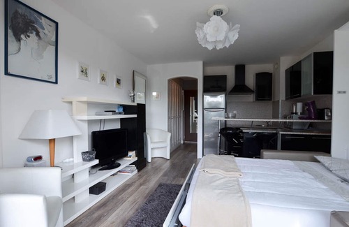Beautiful 23m² studio on the 2nd floor with elevator including entrance with dressing room (double cupboard) - 16.5m² living room with equipped kitchen area (hob-fridge-freezer, coffee maker, microwave) - 140 retractable bed and integrated sofa - Shower room with wc - South-facing balcony (garden lounge-deckchair) - private parking in the basement (car and bike).