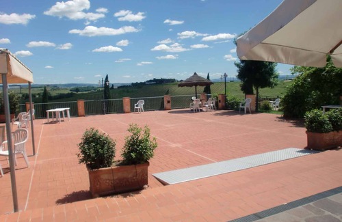 The studio is located in an apartment house and is furnished in a modern and typical country style. The property is located on a farm, on the outskirts. Also due to the view over a panorama from the property and its quiet and sunny location the domicile is popular. Available for use: sunbathing lawn, children's playground, swing, barbecue facilities and terrace.Holiday resort1 restaurant and common room. For dinner, we spoil our guests with Tuscan specialties, which are served in the restaurant or on the terrace at the main house. On our farm we produce wine from the region. LocationSan Zio. The studio is located on a farm, on a 300000 sqm garden plot with meadow, flowers, shrubs and trees. The holiday apartment is located in Cerreto Guidi, in the rolling hills of the area between Montalbano and the Arno river. A place that offers the opportunity to experience authentic Tuscan life in the midst of the peace and beauty of nature. Parking is available on the property. Specialair conditioning.Facilities: internet access (WLAN).For your safety, the accommodation is equipped with CO2 detector and fire extinguisher. PoolAll pools are available for shared use. Outdoor pool (usable from early April to mid October, 6 m x 12 m). LeisureIn the complex: bike rental. Experiences on request: swimming pool for dogs (hourly rate) - guided tour of the cellar with tasting of our wines, in partnership with Cantinge Leonardo da Vinci - alpaca hike through our vineyards with farmer's snack "Merenda" - horseback riding for experts and beginners - cooking course Dogsnot allowed. DistancesShopping 3 km, restaurant 20 m, town center 3 km. Fortress Vinci and Leonardo Museum 5km, Florence 40km, Pisa 60km DivisionStudio, 1 floor, 1 room, 45 sqm, in total 3 beds (including 1 additional bed), on request additionally 1 child up to 2 years in a baby cot. Room Living/bedroom (30 sqm) with 1 double bed, 1 additional bed on couch/sofa, 1 baby cot, sitting area, TV and dining area (4 seats). Kitchenette in the living & bedroom with gas stove (4 flames), fridge (icebox) and microwave. Bathroom with shower, WC and bidet. Terms of lease and pricesIncluded in the priceOutdoor pool, air conditioning, parking place, electricity, gas, water, heating, final cleaning, bed linen, hand towels, pool, baby cot – please order at booking, Wireless Internet access. Side costs-Costs on the spot:/Obligatory:local tax by local tariff (if charged).Deposit:No deposit.