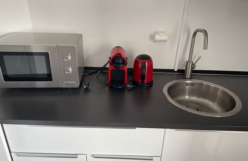 The kitchenette is fully equipped with everything you need for cooking (pans, pots, crockery, cutlery, etc.), refrigerator, ceramic hob, microwave, kettle, toaster and coffee maker.