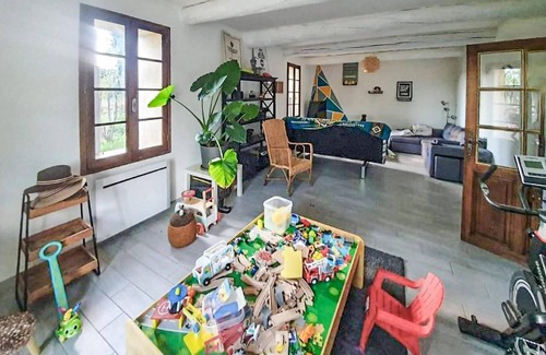 Your charming vacation home is located in the heart of the Vaucluse, close to the famous Mont Ventoux and the Dentelles de Montmirail mountain range. Here you will stay in a quiet location on a large wooded property. Start your day with breakfast in the spacious outdoor area under the shady trees. Enjoy the peaceful atmosphere and prepare yourself for a day full of exciting excursions. The cozy living room offers plenty of space for relaxing hours. Let the children get creative in the play area while you relax in the comfortable seating area. In the evening, the whole family gathers around the large dining table for long, convivial meals.