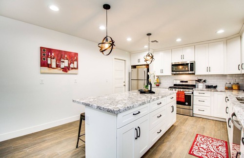 Enjoy Scottsdale in modern style and comfort in this completely remodeled Old Town area home. No details were overlooked in making this a prime destination for vacation travelers. High end finishes throughout and tastefully furnished and decorated. Can sleep 12 in beds so great spot for large groups! Backyard oasis features sparkling pool, firepit, and outdoor lounging couch. Close to Old Town Scottsdale and ASU and multiple Spring Training Parks. Book your stay today!