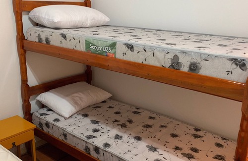 Apt is composed of two rooms with 2 double box beds + one mattress (1,88m) adult + 1 mattress (1,50m) child.