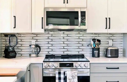 Our fully equipped kitchen includes everything you need to treat your family/friends to a delicious meal: from a waffle maker to cook breakfast to an Instant Pot pressure cooker to prepare a quick dinner. The kitchen also features a small coffee station with a Keurig Duo coffee maker, K-Cup coffee pods, sugar, and cream. You don’t have to worry about cleaning supplies; for your convenience, there are laundry/dishwasher detergent pods in the kitchen cabinet under the sink.