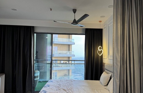 City's Best Views Await Enjoy stunning city & Yamuna views from our stylish, high-floor apartment. Relax on the biggest balcony in the building! Fast Wi-Fi, easy check-in, & a peaceful atmosphere guarantee a perfect stay.