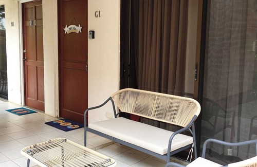 Just outside the main entrance, there is a comfortable lounging area exclusive to guests of this unit. The condo is easily accessible for guests with mobility difficulties, with parking located closest to the unit.
