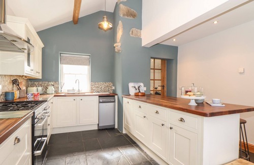 After dinner, sink into the plush sofa within the sitting room, where you can tune into the TV and keep cosy in front of the woodburning stove.