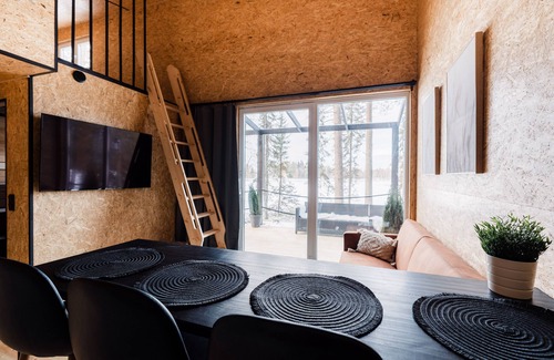 This mini house can accommodate 4 people comfortably but we have beds even for 8. It has full kitchen, sauna, shower, toilet, 2xbedroom and extra sleeping loft. Outside it has nice terrace with jacuzzi. The building has just been completed