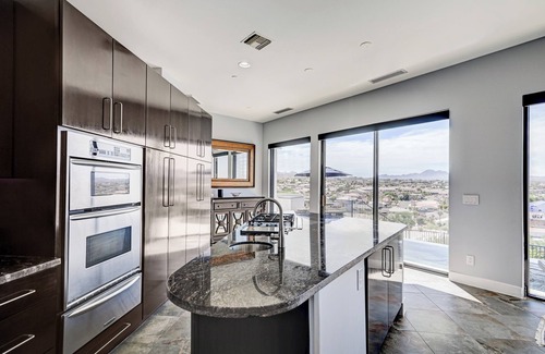 The 360 is a luxurious 5600 square foot 5 bedroom hilltop mansion in an exclusive Calico Hills gated community in Henderson, NV. Enjoy breathtaking views of the strip, the city and the mountains. Close to Lake Mead as well as Lake Las Vegas and the Las Vegas Nightlife.