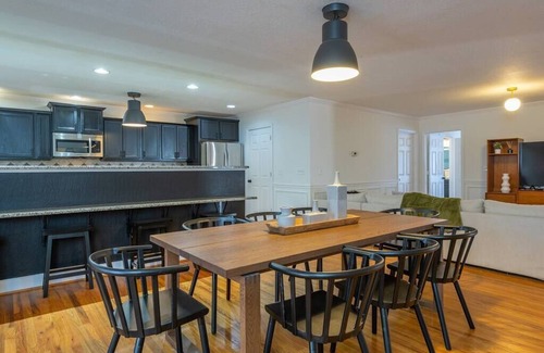 10 minutes from downtown Asheville and 5 minutes from desirable West Asheville, this newly renovated 7000 SF house sits on over 1.5 acres & sleeps 16+ comfortably. Complete with a bocce ball court, hot tub, outdoor firepit, ample parking, and 3 TV rooms with full cable. There are 2 fully stocked kitchens, as well as a pool table and wet bar in the upstairs den. Perfect for bachelor/bachelorette groups, as well as families. 1 block outside of Asheville's restrictions. No parties.