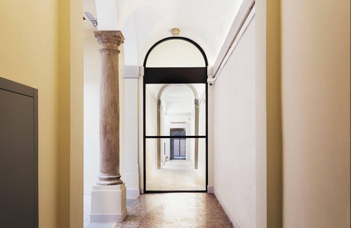 The apartment is located on the 1st floor with lift of a historic building in one of the most important streets in the center of Bologna. It is a splendid three-room apartment with rooms overlooking the Servi church. Entrance to the hall composed of kitchenette, dining table and sofa. The living room leads to a lovely balcony overlooking the Bolognese rooftops. The bathroom has a window and is complete with shower. In the sleeping area, two large bedrooms, one with a queenbed and the other with a queenbed or two singles plus a third single bed. In the sleeping area there is also a small bathroom with toilet and sink. The apartment is equipped with flat screen LED televisions, independent air conditioning and heating, free wi-fi internet connection, ironing board with iron and safe.