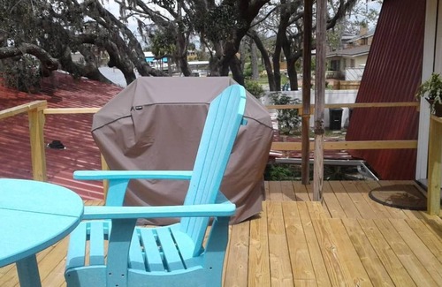 Roomy 1300 sq. ft. 2nd fl home. 1 Bedroom, New queen sofa sleeper. 1 Bath, Community laundry room. Relax on the deck, grill, enjoy the water views. Our 6th Spacious unit at The Hideaway property; Full kitchen, dining area, 55" TV, open living/dining, Dog friendly. Situated amongst majestic oaks & water views from big windows. A perfect affordable getaway! We're a Superhost on Airbnb and provide the highest of quality for our guests.