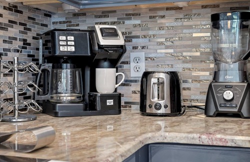 The kitchen is fully stocked with a crock pot, blender, coffee maker (both regular drip & Keurig) and all necessary appliances. Enjoy meals together around the dining table or slide into the breakfast bar for a quick bite. The laundry room is located right off the kitchen with a full size washer & dryer, ironing board, and iron.