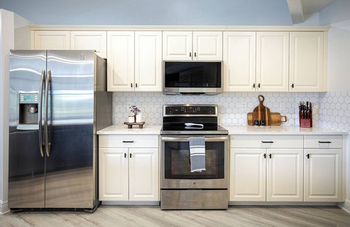 The spacious and fully equipped kitchen features a quartz countertop completed with seating for 4. You will have access to all the essential kitchen tools you need make meals to be enjoyed at one of the 2 dining areas.
