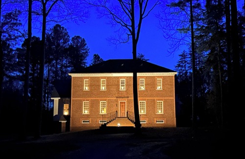 The Highroads is a nearly 10,000 square foot duplicate of the Wythe House in Williamsburg and is in the country. 12' ceilings downstairs and 10' ceilings upstairs. Perfect for corporate look retreats, family get-togethers, baby/wedding showers, Thanksgiving/Christmas family gatherings. This home is near Campbell Lake. The Highroads is decorated with antique and reproduction furniture with historical, family wall-hangings. Three Pencil Poster, two Sleigh beds, and two twin beds for children. Walk to the Lake and CRE Run to see Arabian horses. 5 bedrooms (4 upstairs) including a downstairs Master and an upstairs Master. 4 full baths including Master with 8 jetted tub. Two half baths. Large brick terrace off Family Room has seating for 3 with 2 side tables and one large table; fire pit with cedar logs and the wonderful scent that comes with burning cedar. NEW refrigerator and washer/dryer. Located in the country, so you’ll hear and see owls, mourning doves, deer, squirrels, song birds, hawks, eagles, fox, coyotes, etc. Neighbors on the north side of Scotchtown Road have seen black bears and bobcats. Short Pump Town Center is 30 minutes away. Kings Dominion is 13 minutes away. Randolph-Macon College and the Town of Ashland is 15 minutes away. Downtown Richmond is 37 minutes away. We hope you enjoy staying in a classic Southern estate, The Highroads!