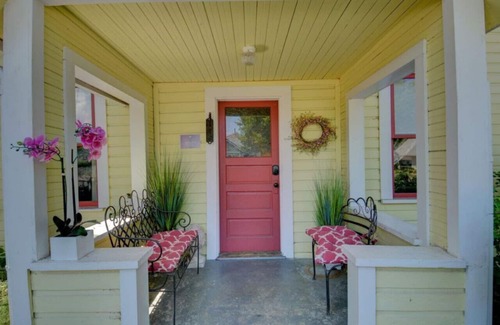 This charming cottage is located downtown in the heart of historic Jacksonville. The Inn on 5th provides a modern lodging alternative, combining all the comforts of home with the casual yet elegant décor of a boutique hotel. Inside you will find 3 delightful bedrooms with beautiful views of the flower gardens, historic churches, and more. The upstairs master bedroom encompasses the entire upstairs complete with reading nooks and a large whimsical chess board. All the beds have luxurious 100% bamboo sheets, and down alternative comforters.
