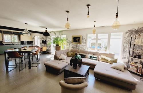 Just 10 minutes from the beaches of Vendres and Valras-Plage, this 150m² villa invites you to a relaxing getaway, nestled in a setting inspired by Thailand and Bali.