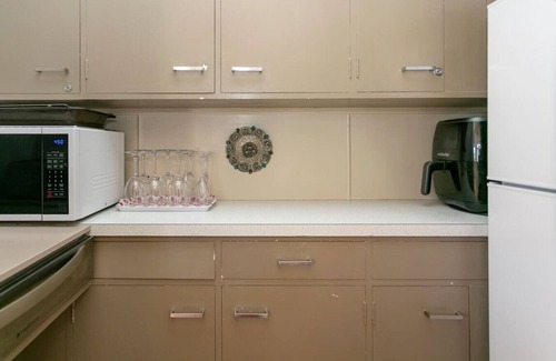 .If you love cooking on vacation, you'll enjoy this well-equipped kitchen, complete with a walk-in pantry and all the essentials. As the heart of this vintage-style home, it connects seamlessly to a comfortable lounge with an open fire, a sunroom with lake views, and a kitchen island bench perfect for socializing. In summer, open the doors to the covered patio, where outdoor seating and a BBQ create an ideal setting for a relaxing Taupo evening.