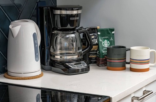 Prepare a quick snack or a large feast for the whole group in the fully-stocked kitchen. It features beautiful countertops and modern appliances, including a refrigerator, stove, microwave, toaster, coffee maker, air fryer, rice cooker, and crockpot. There are 3 stools at the counter for extra seating. The open setting offers your group 2 separate living rooms to enjoy the space. We also have a rocking chair and pack and play for new parents with young kids.