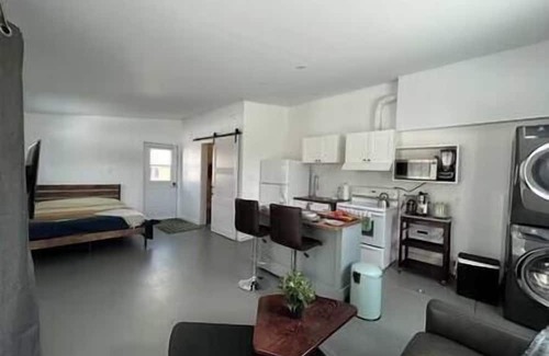 Relax and unwind in this tranquil and stylish accommodation. Located in the center of the village of Les Bergeronnes, you can easily access the starting points for whale watching cruises. The outdoor center, hiking and cycling trails are 5 minutes away by car. Close to services: canteen, restaurant and grocery store. With a double size sofa-bed and a queen size bed, the whole family can sleep well. The studio also provides a small but completely functional kitchen and dining space!