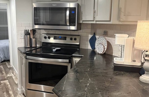 Pull away for the hustle and bustle of everyday life and retreat to The Refuge @ Vanderosa.Reconnect with nature at this unforgettable escape. Soak in the peace in the cozy and cute tiny home, with one bedroom and sleeping loft. Relax and unwind in a hammock, on the porch,or on the patio under the shady oak. Have some farm fresh eggs, straight from the chickens you can watch play the xylophone in their coop on thepremises. Play basketball, pickleball, or go for a bike ride through the quiet neighborhood.Located in Conroe, Texas.