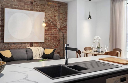 The apartment retains many original features, including polished floorboards and brick-clad walls, which add to the ambience of the apartment in a vibrant part of town. Kick back on the sofa or armchair in front of the smart TV, cook up meals in the gourmet kitchen and dine in style at the four-seater table. A balcony offers seating for two so you can soak up the area’s industrial vibe.