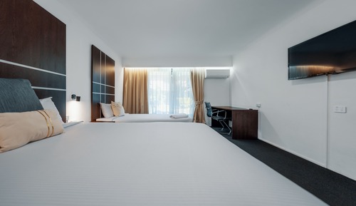 The Select Inn Gosford offers 50 air-conditioned accommodations, which are accessible via exterior corridors and feature hair dryers and irons/ironing boards. Rooms open to balconies or patios. Pillowtop beds feature premium bedding. Accommodations at this 3.5-star motel have kitchenettes with refrigerators and microwaves. Bathrooms include bathtubs or showers and complimentary toiletries.