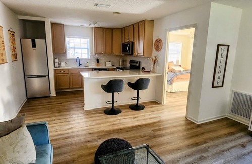 Located in the middle of the island across from a picturesque pond, 10 minutes south to the beach, 7 minutes north to Fort Frederica and under 5 minutes to the Sea Palms Golf Club, the apartment is perfectly situated for easy access to all of the wonderful activities and sites St. Simons has to offer. Glynn Haven is a quiet neighborhood with beautiful walks, as you wander you will see turtles basking on logs in the sun and herons flying overhead. Head to the end of Cedar for the best view in the neighborhood or walk just a couple minutes down the road to grab breakfast at Cafe Frederica or great fish tacos at La Plancha.