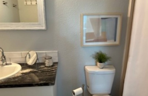 The master bedroom has a beautiful KING 14" firm gel memory foam mattress bed with comfortable bedding and a 42" TV. The guest room has two QUEENbeds with TV as well. Both master bedroom and guest room have full bathroom with vanity and a shower/tub combo.