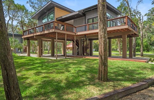 This home built in 2021 is one of the most recognizable properties in Old Homosassa. Directly across from the well known and often photographed twin roosters on Mason Creek this home is located within private protected nature preserve and wetland management lands. It offers a microwave, coffee maker and deck space.