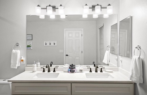A complete 5 bedroom home – plenty of space for everyone in your group! Enjoy a restful night in any of our bedrooms. The master has an attached bathroom, while there is an additional bathroom in the hallway upstairs and downstairs for easy access.