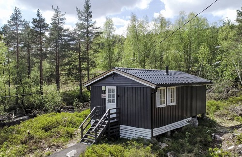 Small, beautiful timber house "Thorabu", 345 m a.s.l built in 1977 in 2021, surrounded by trees. 12 km from the centre of Kyrkjebygd, 78 km from the centre of Mandal, 83 km from the centre of Kristiansand, 400 m from the lake, directly by the river. Private: natural state property 480 m2, trees, parking (for 2 cars) on the premises. Shop 12 km, bus stop "Eikerapen" 180 m, ferry "Kristiansand" 83 km, bathing lake 2 km, lake Øre 400 m. Fishing possibilities 2 km.